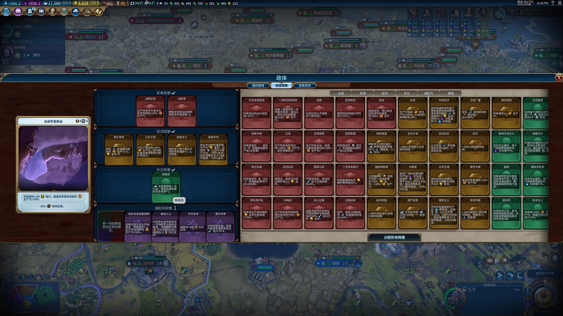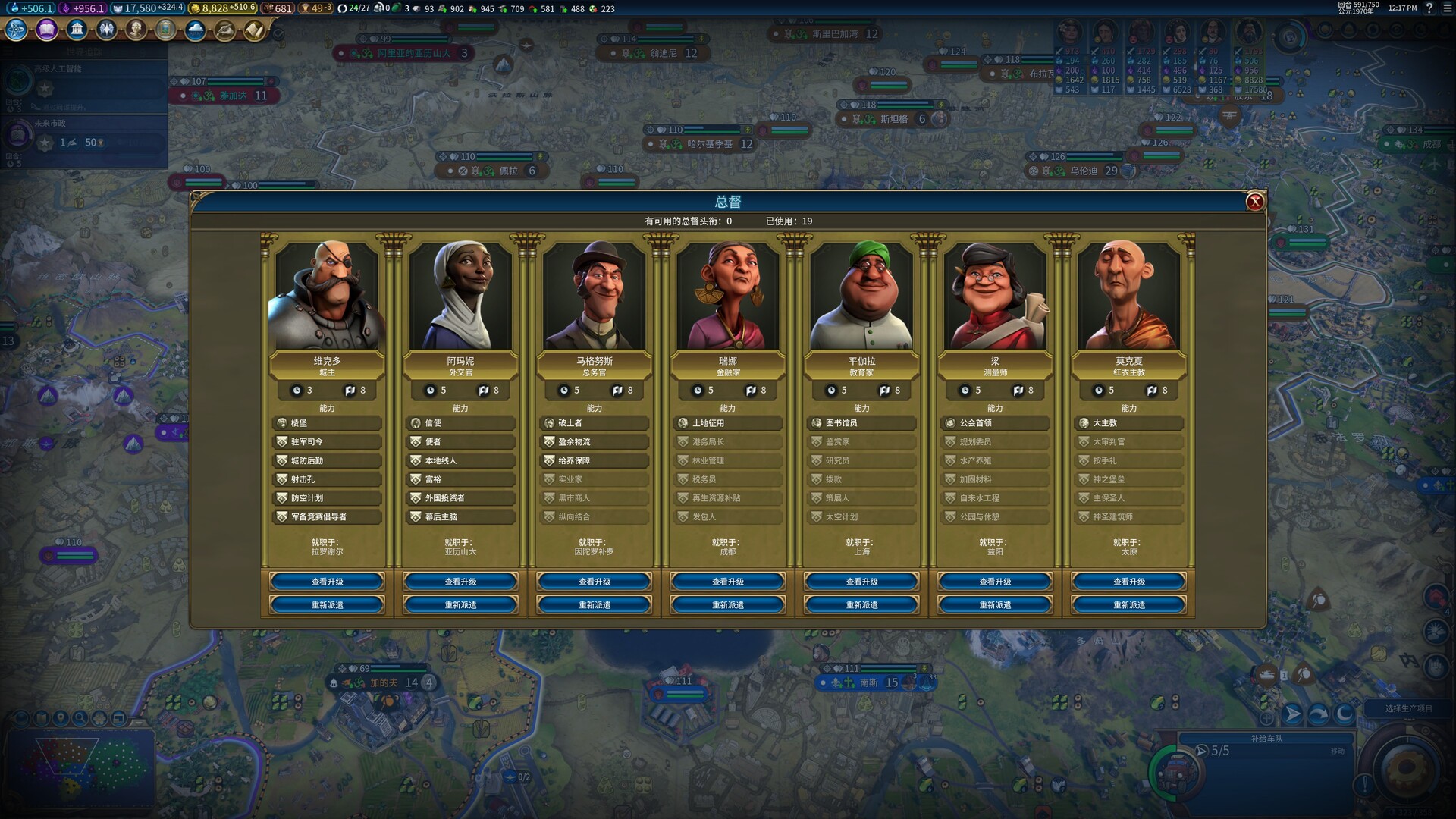 - 派驻总督。外交政策使用 联络处,总督每拥有一次升级,其所在城市每回合忠诚度+1。因此使用满级总督可以获得最高的忠诚度。