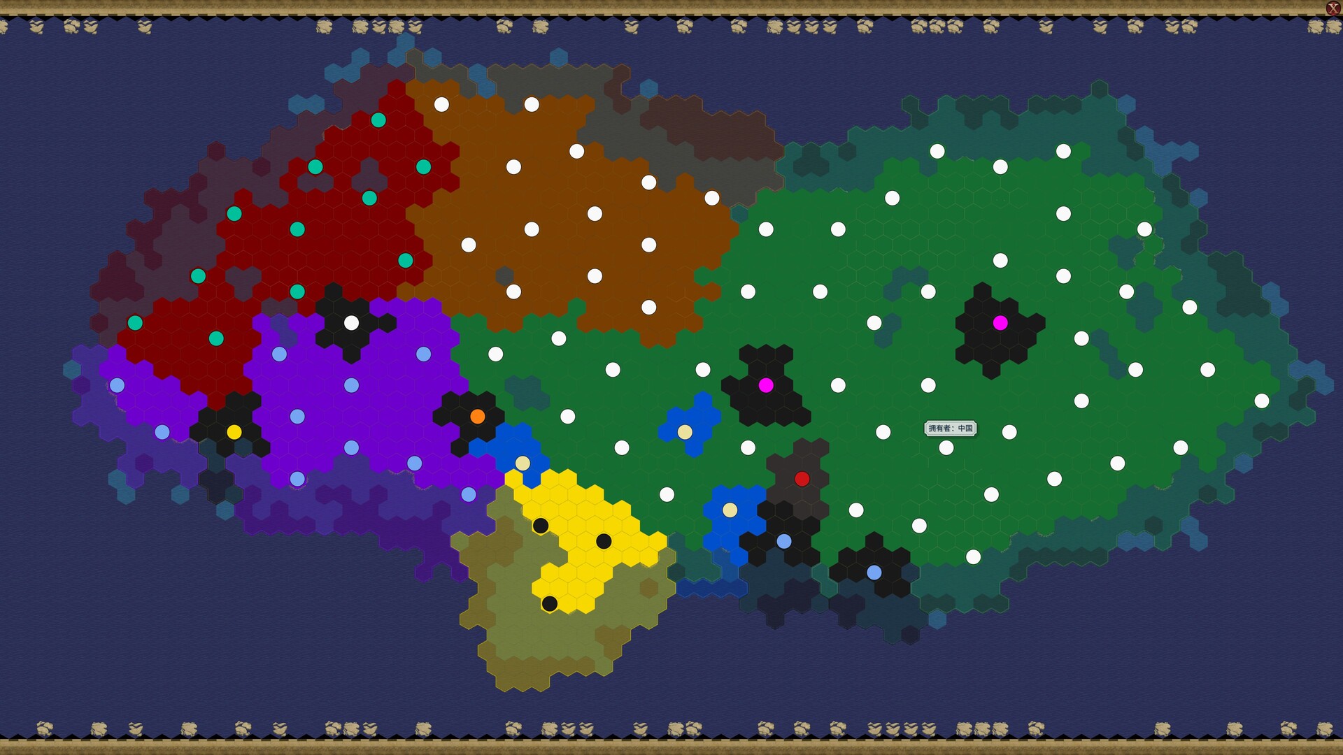 这一局西边邻国是 祖鲁王国 和 法国,祖鲁王国 对我开放了边界,法国西部有 2 个城市 亚历山大 和 拉罗谢尔 由于人口太少并且比较突出,无法维持忠诚度,将在几个回合后变成自由城市。于是我就想等他们变成自由城市之后去占领,弄一块 飞地 玩玩。