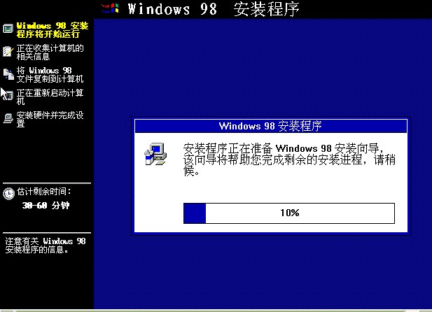 前些天搜到了华南农业大学的ipv6 FTP站,看到了windows 98,windows me等老系统,正好最近在用虚拟机,就心血来潮要装win98。教育网的ipv6下载还是很给力的,很快就下载好了,不过安装时却遇到了问题。