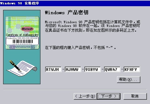 接下来却不按照教程发展了,死活进不去win98目录,F:\WIN98 F:\SETUP都没有用,搞到凌晨3点多都没搞好。