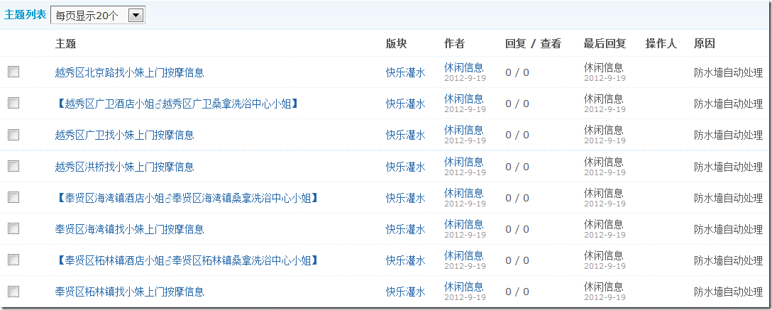 不过发的比较单一,全部是找小姐,容易识别,防水墙也比较给力的,全部给处理了。