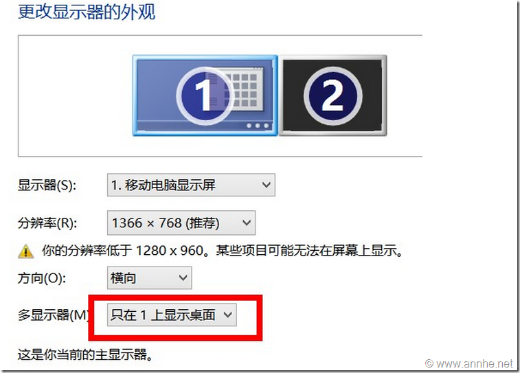 Post navigation ← Previous Next → 鼠标移到屏幕边缘时消失 Posted on 2013 年 1 月 20 日 by annhe 11.6K Views 可能是多显示器造成的问题. 桌面,右键,屏幕分辨率,选择 “只在1显示桌面” ,,,(如果当前用的是监视器2,那就选2)。 然后问题解决。 有时候还会遇到右下角的显示屏幕区域陷入屏幕右侧的问题,,此时也可以用这种方法处理. 相关文章: 在wordpress上使用soso表情 扫描版PDF转文字 自定义msys命令