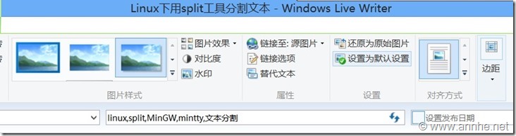 Post navigation ← Previous Next → Windows Live Writer设置图片默认格式 Posted on 2013 年 2 月 25 日 by annhe 3K Views 写前一篇日志,插入图片发现图片自动居中并且加水印了,才想起来自己前几天保存了一个默认设置. 以前图片水印都是一张张的输入的,每次单独设置, 确实是繁琐的工作,看来还得多学学Live Writer的技巧== 以下随便玩一玩live writer的功能~ 我的位置 相关文章: 用Windows Live Writer写日志 新版Windows Live Writer Windows xp professional激活密钥 Windows 8中文版官方哈希校验值