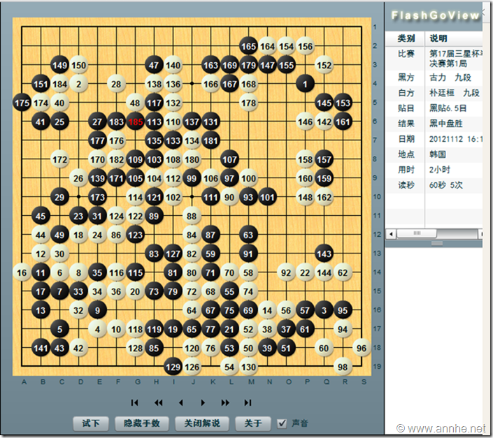 早期折腾论坛的时候,就四处寻找在网页上打谱的工具,发现一个奇怪的现象:围棋虽是中国人发明的,并且当今棋坛是东亚中日韩三国鼎立,可是很多流行的围棋软件却是欧美人写的,特别是网页打谱工具,流行的棋谱格式sgf也是西方人发明的。