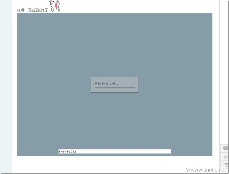 RSL Error 1 of 1,Error #2032,百度了一下,大致了解了下RSL,使用这种技术可以减小flash文件的大小,增加flash加载的速度。可是给出的方法都没解决问题。添加mime类型也无效。