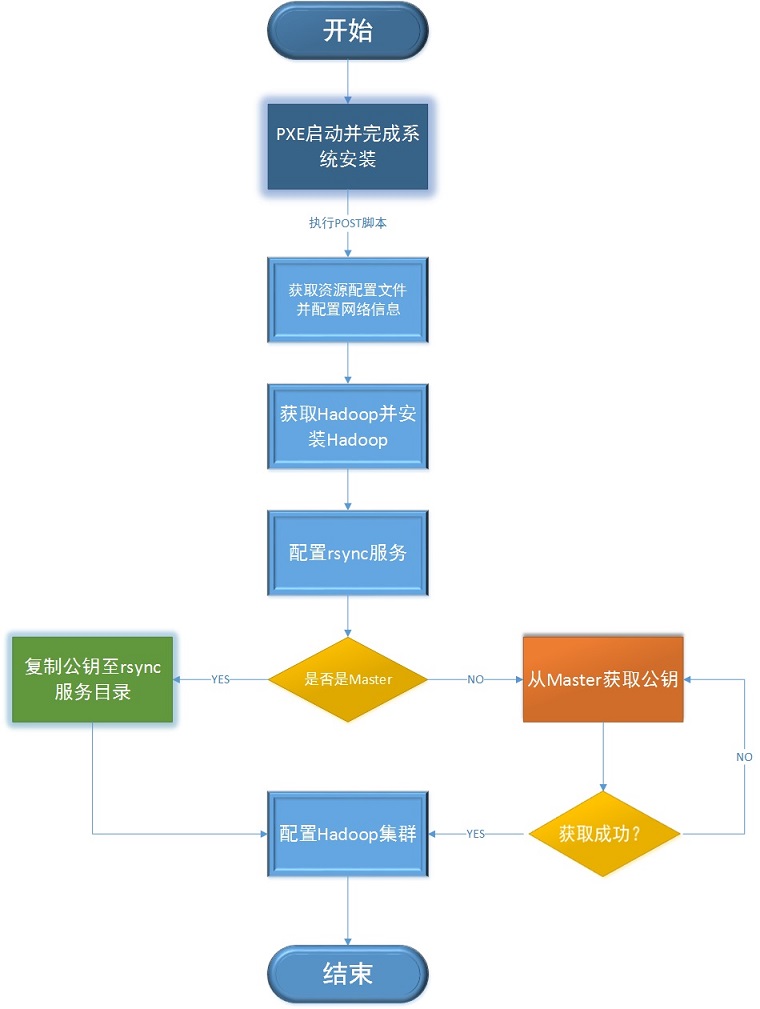 在 基于Kickstart & PXE的CentOS无人值守安装 一文中,介绍了一种高度自动化的RedHat Linux安装方式。由于Kickstart支持脚本,利用Kickstart技术也可以实现Hadoop集群的自动化部署。本文试构建一种利用Kickstart脚本根据资源分配文件自动化部署Hadoop集群的方案。