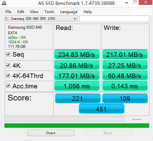 上图厂家标的 读500M/s,写160M/s,与跑分基本一致。11年的本带三星msata接口SSD,读写均标500M/s,价格比上图的高近200,实际速度减半,不知道是不是因为本太旧了。