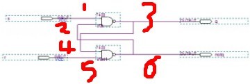 如上图是一个SR锁存器,1为S端,5为R端,低电平有效,3为Q端,6为Q' 端。设初始状态均为低电平。此时,3端为1,3端状态反馈至4端,4端为1,6端为0,6端在反馈至2端,2端为0,。