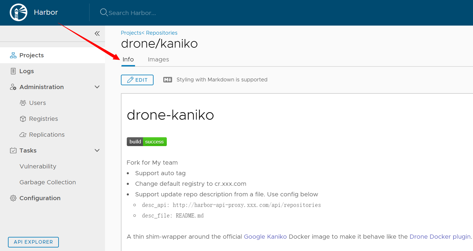 Harbor 镜像仓库可以添加描述信息,像 Docker Hub 那样,浏览镜像仓库,就能大致了解镜像的用途及使用方法。但是手动维护描述信息会很麻烦,更好的方案是直接将代码仓库的 README.md 文件自动更新到描述信息。本文记录了一种在 Drone CI 中通过定制 kaniko 插件来自动更新 Harbor 仓库描述信息的方案。